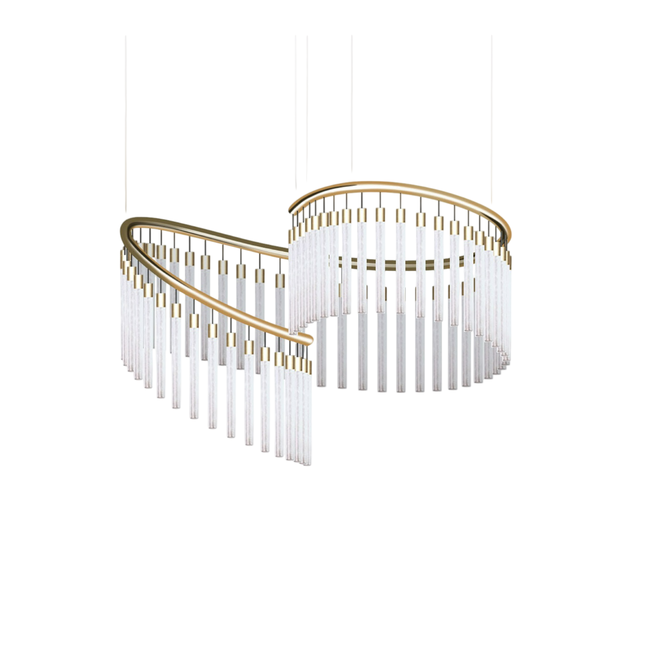 Хрустальные подвески расположены по спирали, что придает светильнику архитектурную глубину и заставляет его выглядеть по-разному с каждого ракурса.