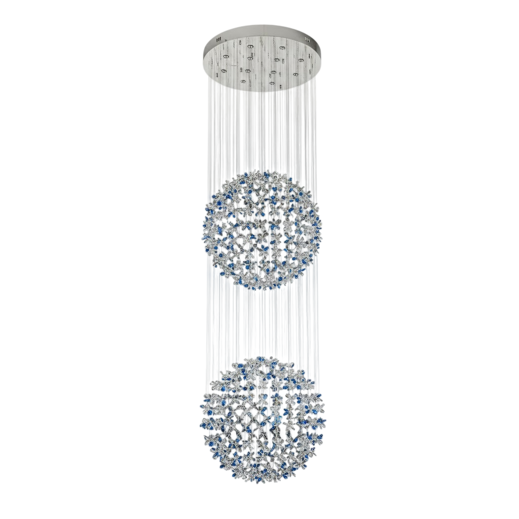 Дизайн люстры вдохновлен образом «Цветочного сна», где мириады лепестков парят в воздухе, образуя четкие геометрические или свободные природные формы. В зависимости от модели, композиция может быть представлена в виде ниспадающих лиан или парящих сфер, состоящих из сотен хрустальных элементов.