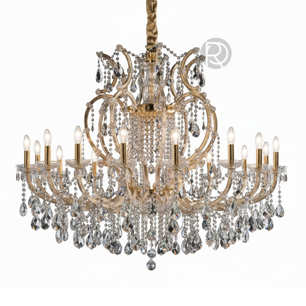 Классический силуэт, вдохновленный величественными европейскими дворцами, с ажурной золотистой арматурой и обилием сияющего хрусталя. Тысячи граней искусно ограненного хрусталя ловят и преломляют свет, создавая в комнате каскад ослепительных бликов и игру теней.