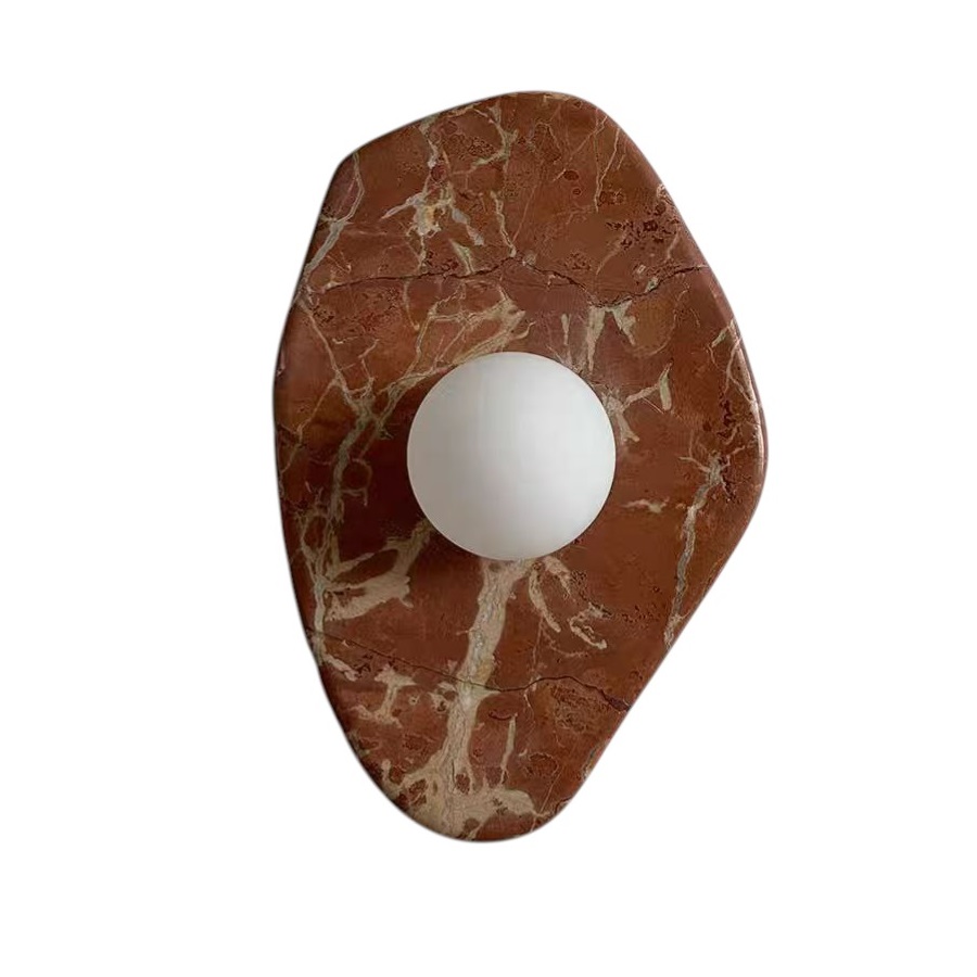 JADOUX by Romatti — это воплощение природной элегантности и современного дизайна в мире интерьерного освещения. Светильник выполнен в виде асимметричной мраморной пластины с тёплым терракотовым оттенком и выразительными прожилками, что придаёт ему уникальность и изысканность. Центральным элементом служит матовый сферический плафон, мягко рассеивающий свет и создающий уютную, расслабляющую атмосферу. Такой дизайн превращает JADOUX не просто в источник освещения, а в стильный акцент, который оживит любой интерьер.