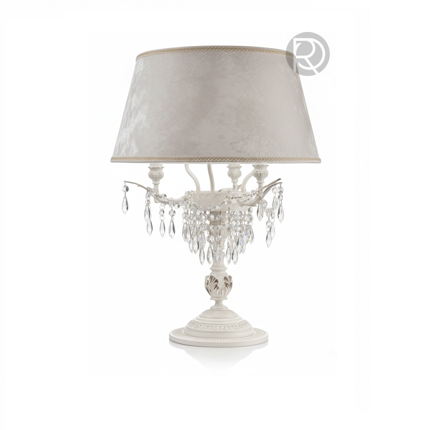 Светильник выполнен в нежных светлых тонах, что придает ему воздушный и элегантный вид. Изящное основание с классической резьбой и формой в виде миниатюрной люстры подчеркивает его роскошное происхождение.