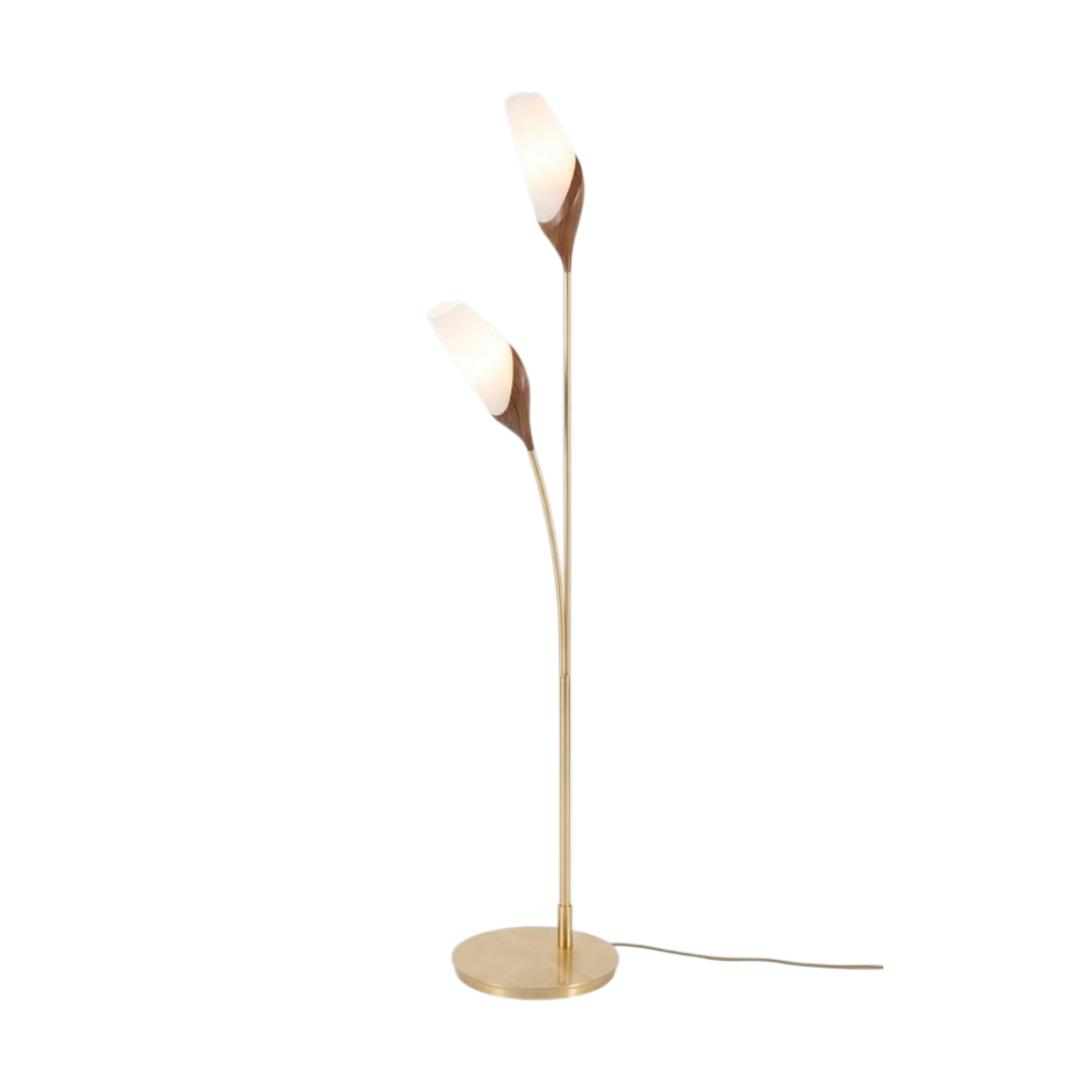 Торшер NUMI-MAGNOLIA by Romatti — изысканное сочетание элегантности и минимализма. Его дизайн напоминает нежные цветочные бутоны: два плафона, выполненные в форме лепестков, изящно возвышаются на тонкой металлической ножке золотистого цвета. Плавные линии и мягкие формы создают ощущение лёгкости, а тёплое свечение плафонов наполняет помещение уютной атмосферой. Устойчивое круглое основание обеспечивает надёжность и безопасность конструкции.