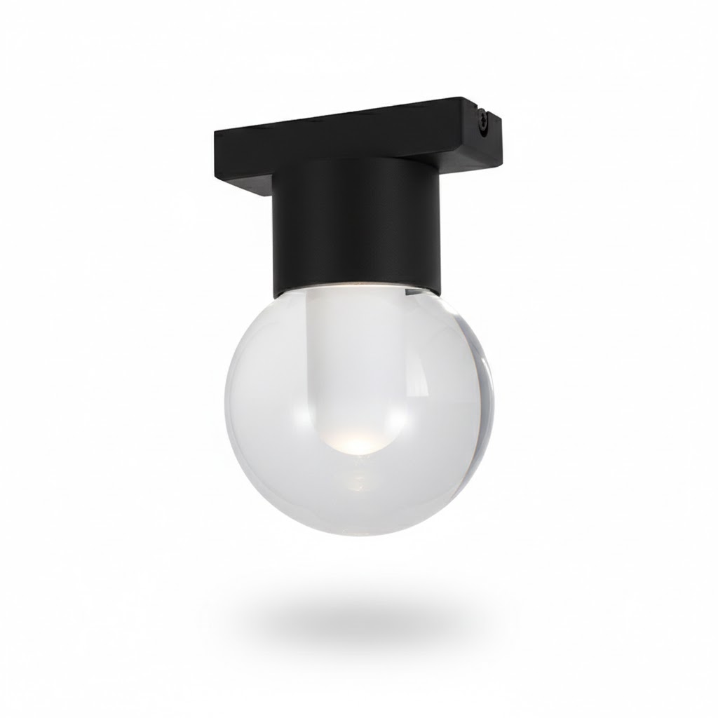 * **Дизайн:** лаконичная форма с чёрным металлическим основанием и сферическим плафоном из ПММА.