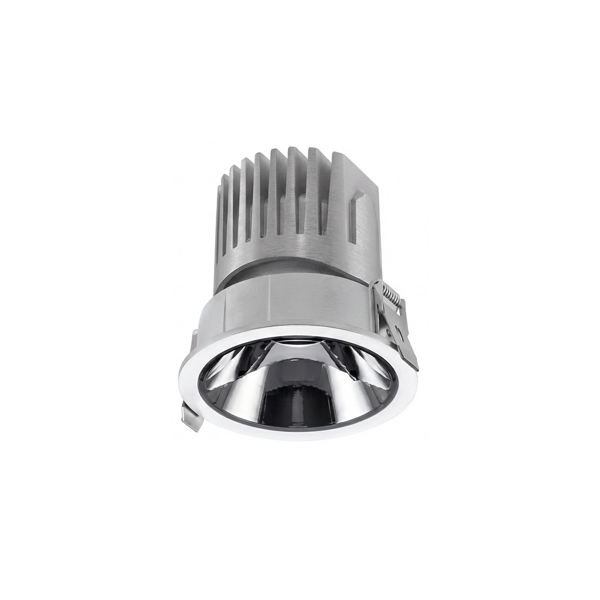 Конструкция светильника выполнена с упором на надежность и эффективное управление теплом. Верхняя часть корпуса оснащена развитым алюминиевым радиатором, который предотвращает перегрев светодиода, обеспечивая стабильную работу на протяжении многих лет. Благодаря компактным размерам и простой системе пружинных креплений, модель легко монтируется в подвесные или натяжные потолки, позволяя органично распределить свет даже в помещениях с ограниченным запотолочным пространством. Это универсальный инструмент для тех, кто ищет баланс между эстетикой скрытого монтажа и профессиональным качеством освещения.