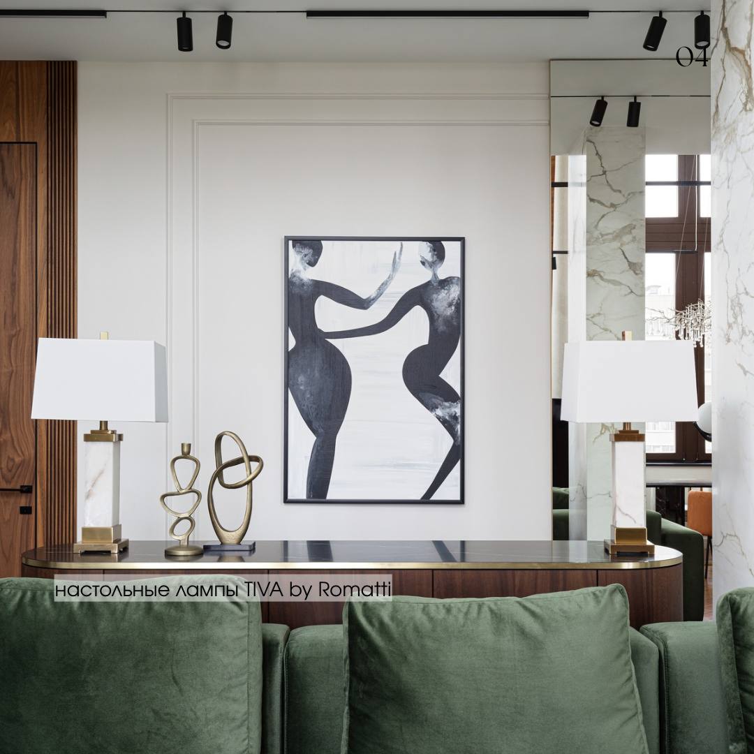 3️⃣ Настольные лампы TIVA by Romatti — создают уют и выделяют зону консоли.