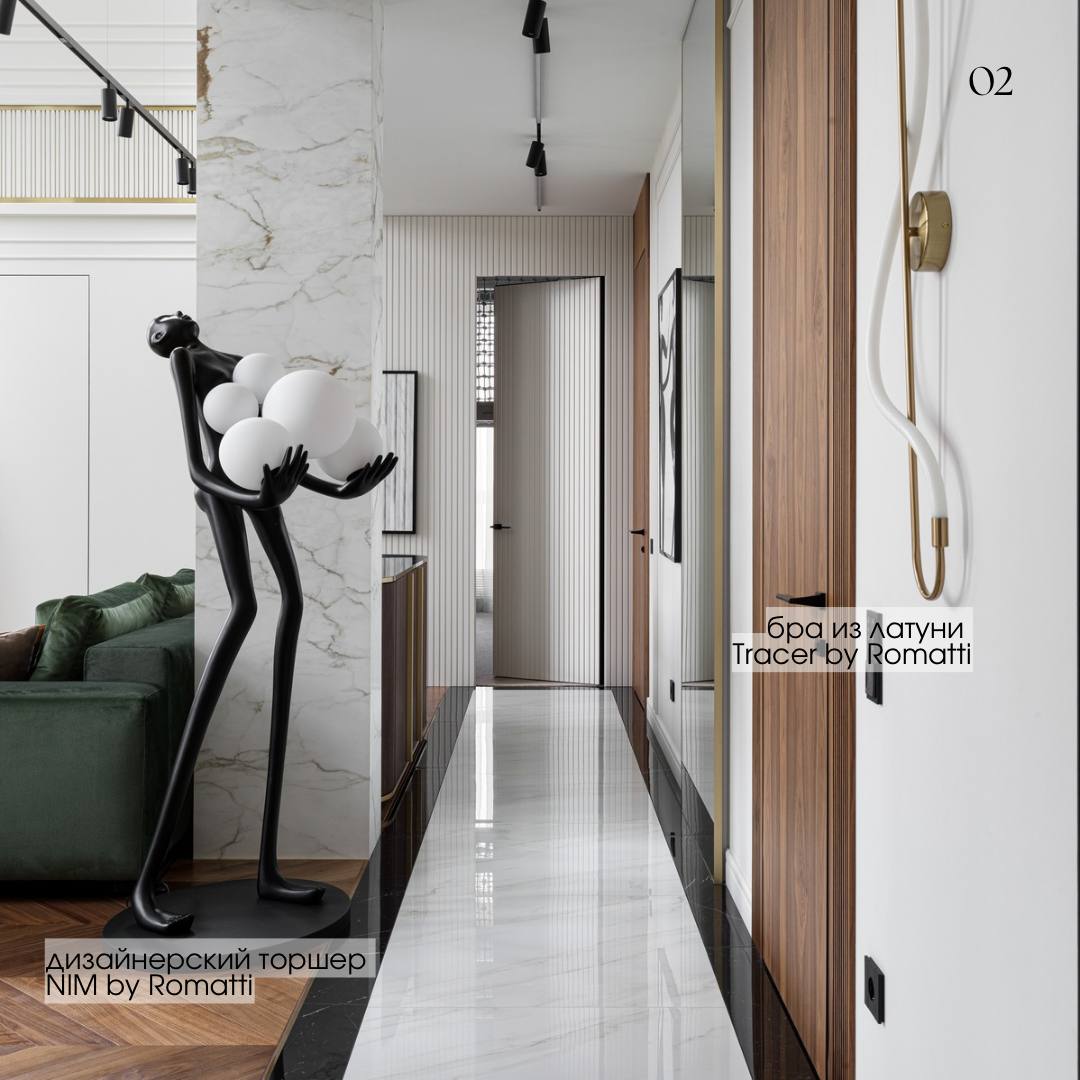 6️⃣ Люстра KANAS by Romatti, торшер LAURAS by Romatti, а также мебель индивидуального изготовления и авторские столики.