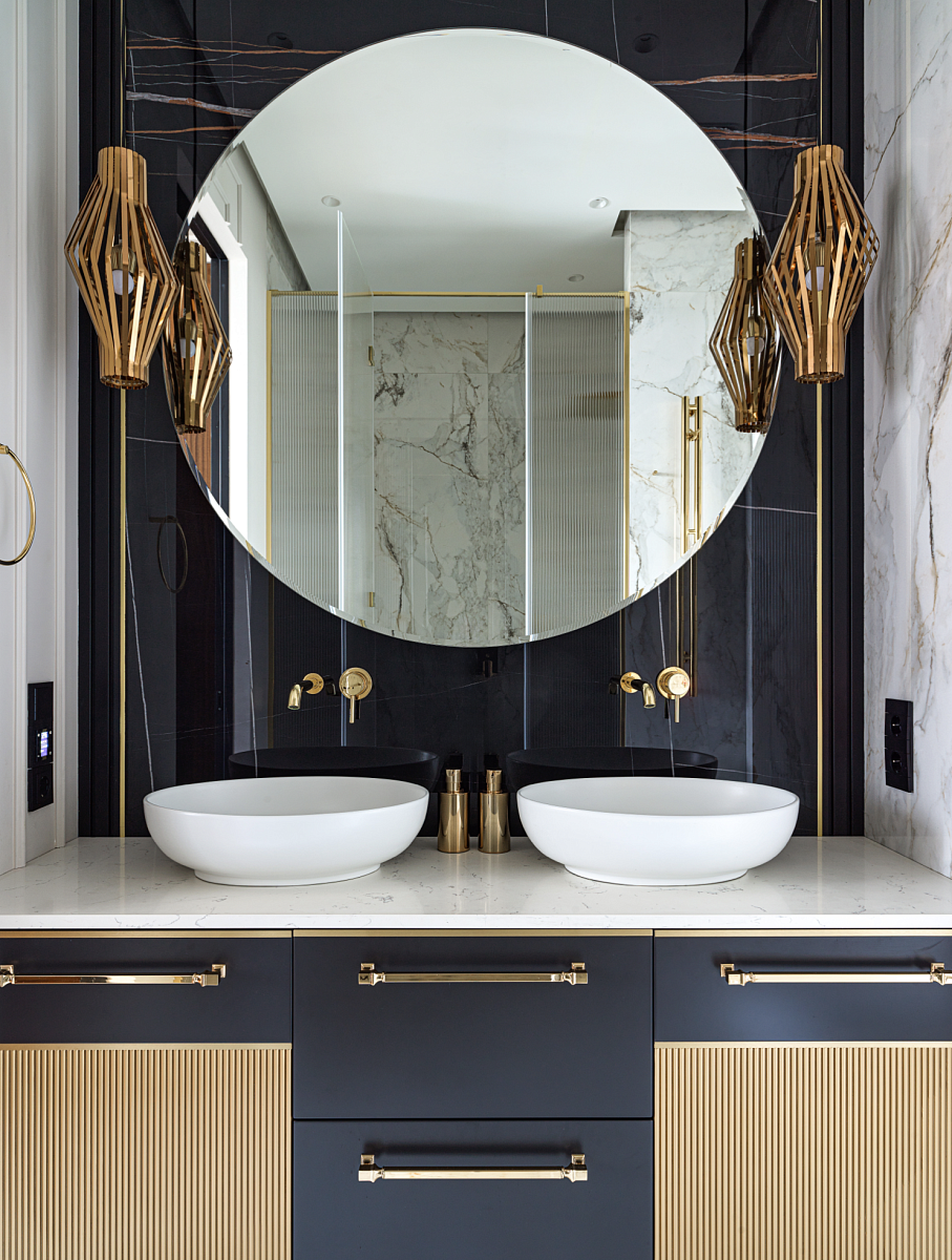 В ванной комнате мы добавили динамику и современный характер с помощью: